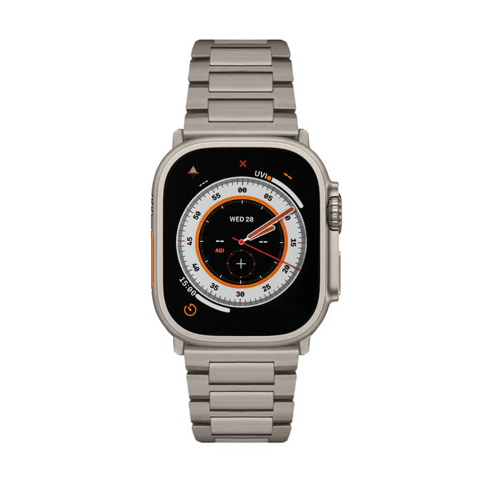 Style your Apple Watch Ultra with our everyday titanium band. Crafted from Titanium that is waterproof and lightweight. A timeless piece perfect for formal wear & on-the-go adventures. Designed for the Apple Watch Ultra, made to match and wear as a pair